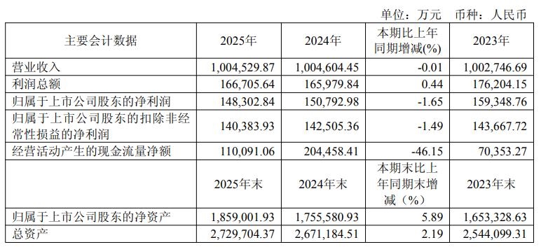 3月20日,中國鐵建重工集團股份有限公司(證券簡稱:鐵建重工,證券代碼:688425)公布2025年年報。報告顯示,公司2025年營業收入為100.45億元,同比下降0.01%;歸母凈利潤為14.83億元,同比下降1.65%。其中高端農業機械收入增長33.27%,毛利率減少7.41個百分點。