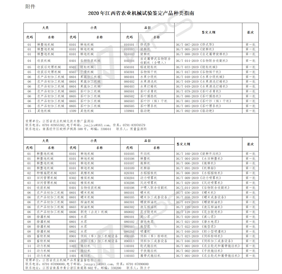 江西省關于公布2020年農業機械鑒定產品種類指南的通知