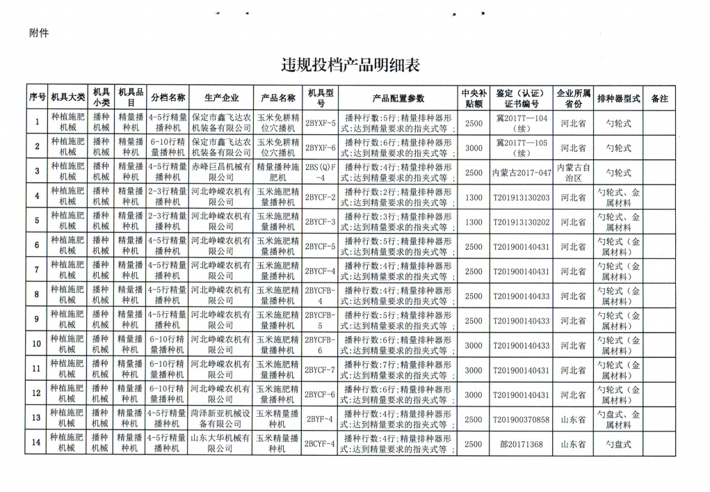 云南省關(guān)于對5家企業(yè)農(nóng)機購置補貼違規(guī)投檔行為處理的通知