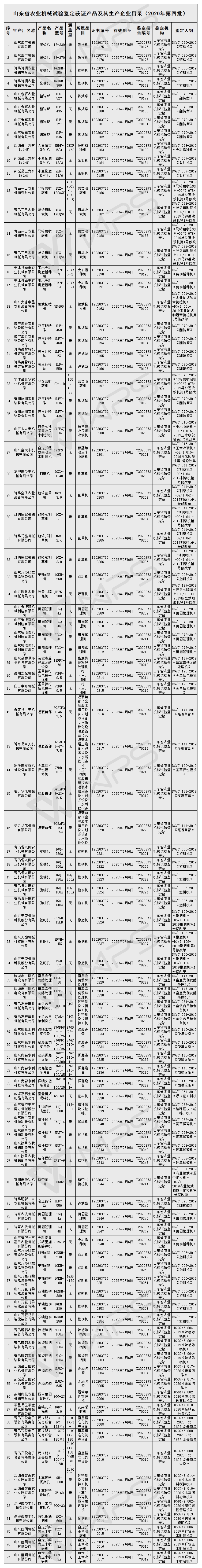 山東省關于2020年第四批農業機械試驗鑒定結果的通報