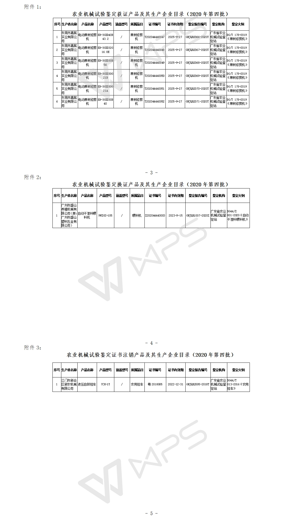 廣東省關于2020年第四批農機試驗鑒定結果的通報