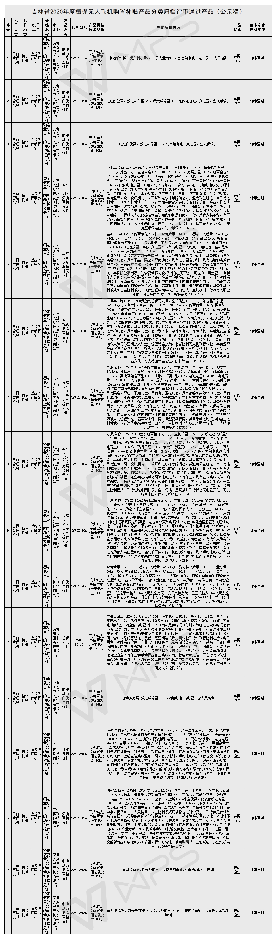 吉林省農(nóng)業(yè)機(jī)械化管理局關(guān)于吉林省2020年度植保無(wú)人飛機(jī)分類(lèi)歸檔情況公示的通知
