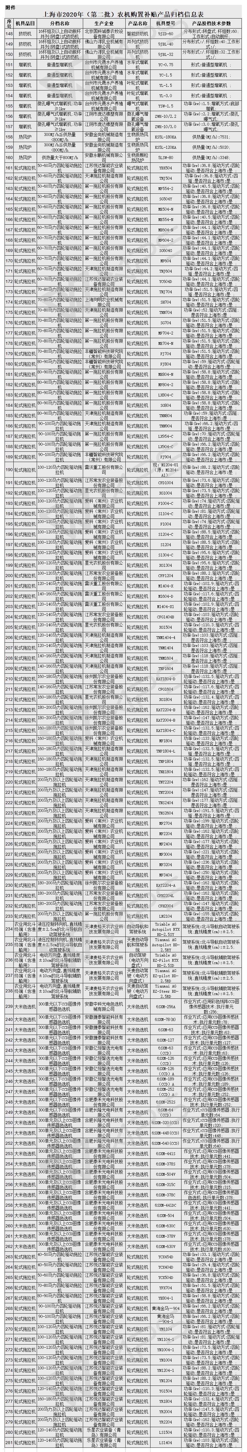上海市2020年(第二批)農(nóng)機購置補貼產(chǎn)品歸檔信息的通知