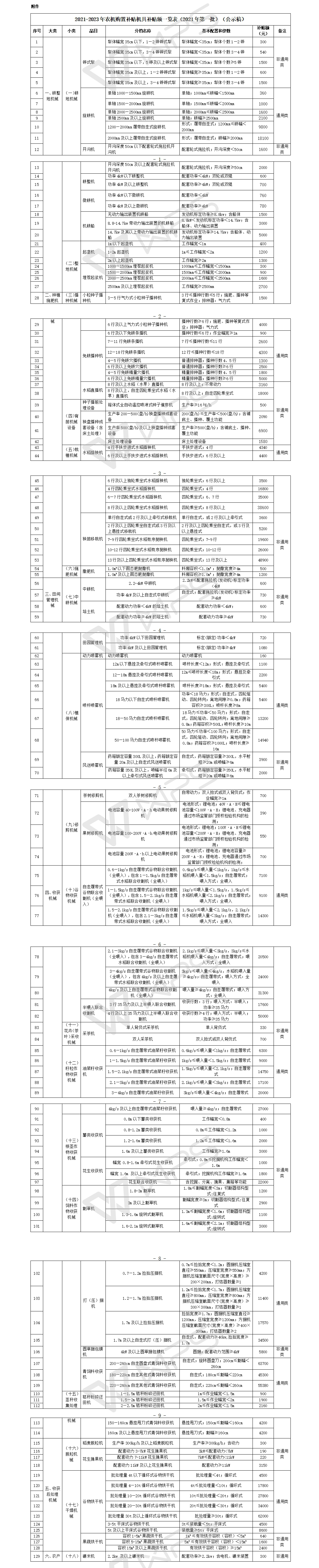 江西省農(nóng)業(yè)農(nóng)村廳辦公室關(guān)于2021-2023年農(nóng)機購置補貼機具補貼額一覽表(2021年第一批)公示