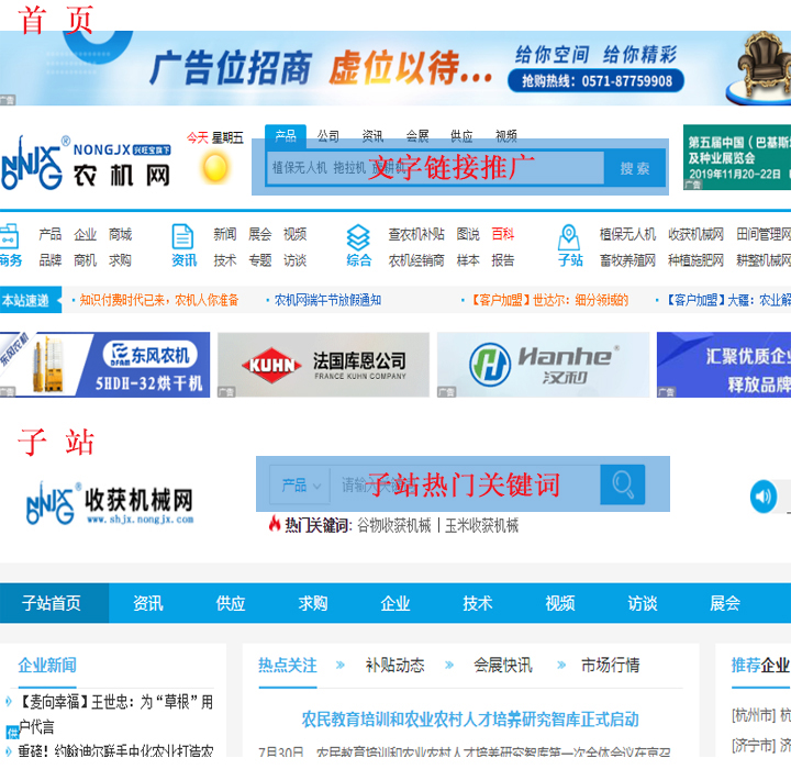 廣告服務(wù)農(nóng)機(jī)網(wǎng)成立于2005年,是一家大型的農(nóng)業(yè)機(jī)械行業(yè)門戶網(wǎng)站,主要面向農(nóng)業(yè)機(jī)械;畜牧機(jī)械;農(nóng)副加工機(jī)械;漁業(yè)設(shè)備;園林機(jī)械;農(nóng)資及農(nóng)產(chǎn)品等領(lǐng)域的專業(yè)用戶創(chuàng)建全球網(wǎng)絡(luò)營銷服務(wù)平臺,致力于為國內(nèi)外農(nóng)業(yè)機(jī)械及相關(guān)企業(yè)搭建信息互動的橋梁,為客戶實(shí)現(xiàn)商機(jī)!