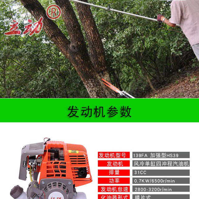 3. 一機兩用 能夠修剪高達3.50米左右果樹上的枝葉,無須攀爬果樹,有效的保護果樹并且用戶的安全也相應得到保障。