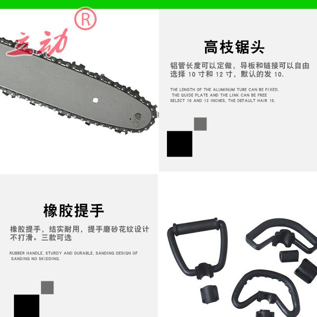 使用范圍:適用于蘋果、柑橘、板栗、桃子、梨子等果園及城市綠化的枝葉修剪、截枝,操作簡單,工作效率高。高把油鋸用于森林采伐、造材、打枝等以及木場造材、鐵路枕木鋸截等作業。尤其適用于高處危險之地的修剪.該產品具有功率大、振動小、鋸切效率高、伐木成本低等諸多優點。已成為我國林區手持式采伐主導機械。