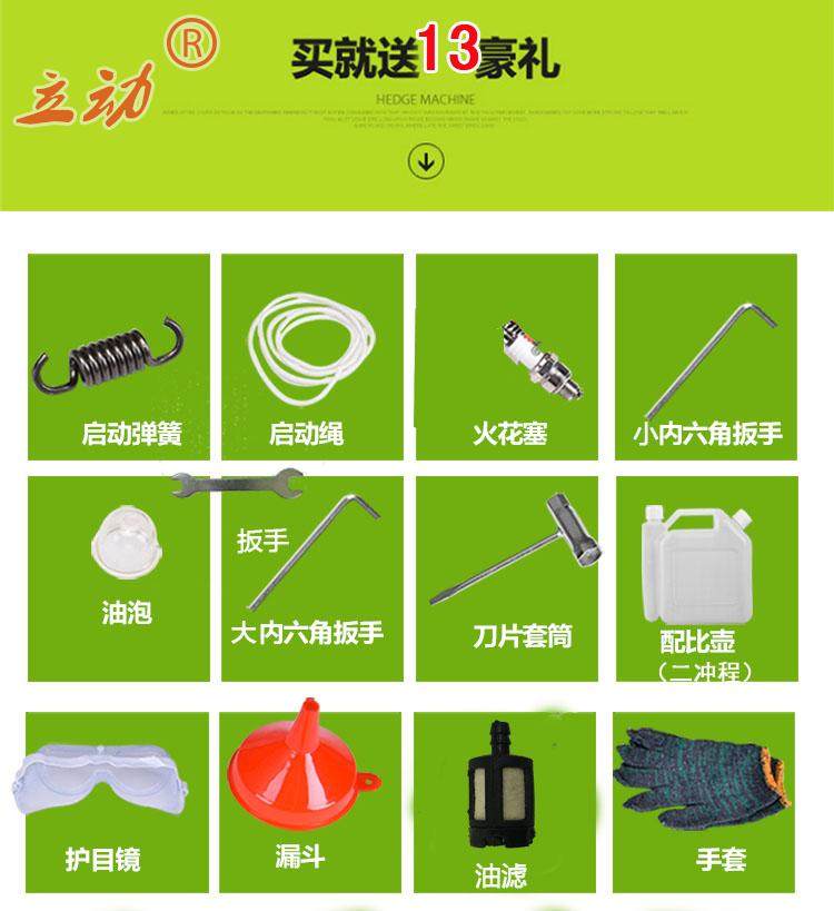 11.每工作50小時清除火花塞,積碳,更換油濾器,向齒輪箱添加黃油。